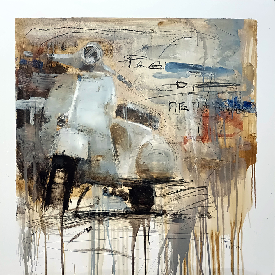 Le Vespe nascono dalla memoria, dal ricordo di un mondo passato, di quel ritmo lento che ormai non seguiamo più. Emblema del boom economico, icona di libertà, con la sua linea sinuosa la Vespa ci riporta a un’epoca in cui l’ottimismo e la gioia di vivere imperavano e nel quale anche gli oggetti di uso comune trasmettevano sensazioni di allegrezza e rassicurazione.